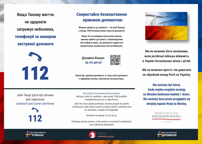 W ramach naszej pomocy ww. osoby będą mogły skorzystać z bezpłatnej pomocy prawnej, psychologicznej i materialnej.