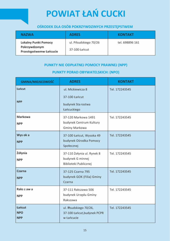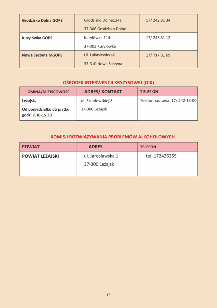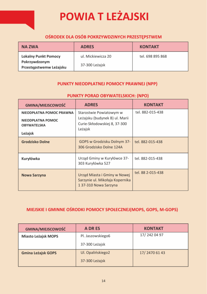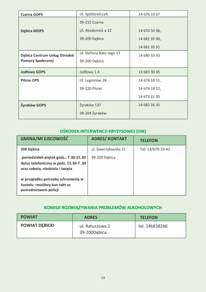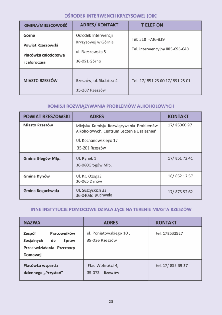 INFORMATOR INSTYTUCJI POMOCOWYCH